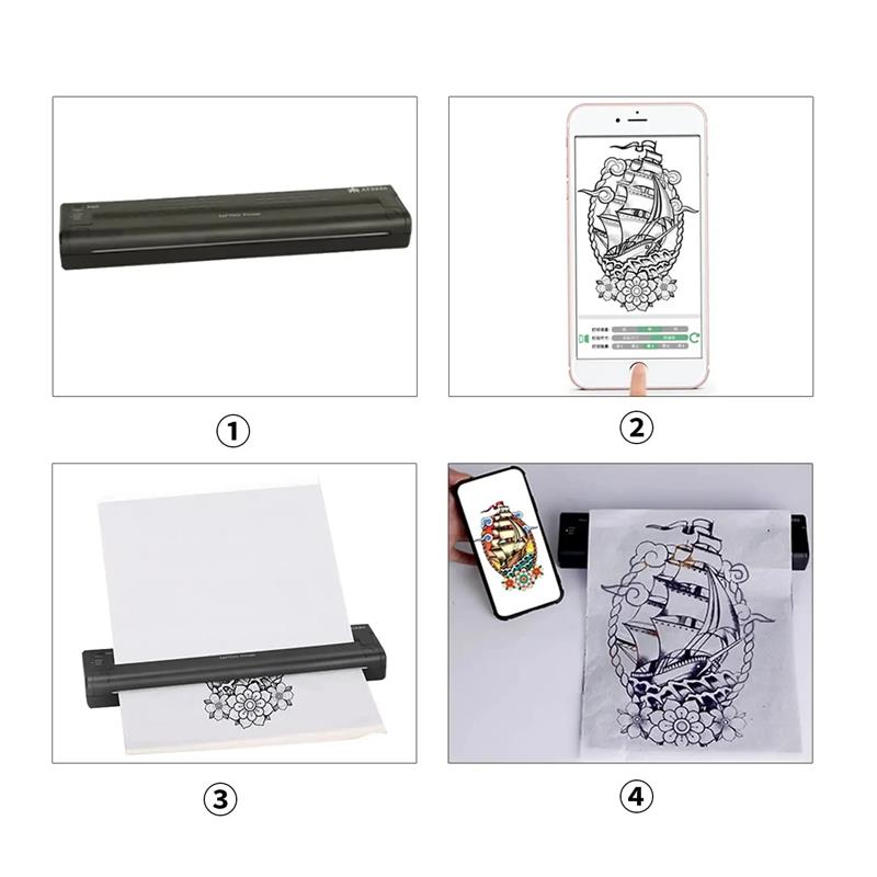Tecnología de Impresión Térmica: transfiere tus diseños de tatuajes de manera precisa y clara sin necesidad de tinta o tóner, asegurando que cada detalle se reproduzca fielmente.